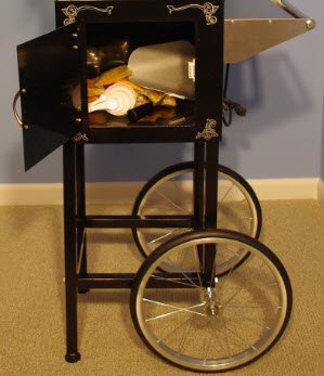 -Popcorn Cart is Push-able and very portable on Large 16" Wheels.