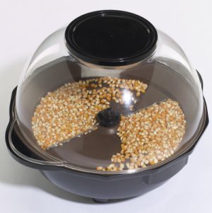 6 Quart Corn Popper Flavourful Cinema Style popcorn made right in your own home Built-in butter well butters popcorn as it pops Non-stick popping surface Motorized stirring rod ensures perfect popping every time Lid becomes the perfect serving bowl Enjoy a delicous and light snack!