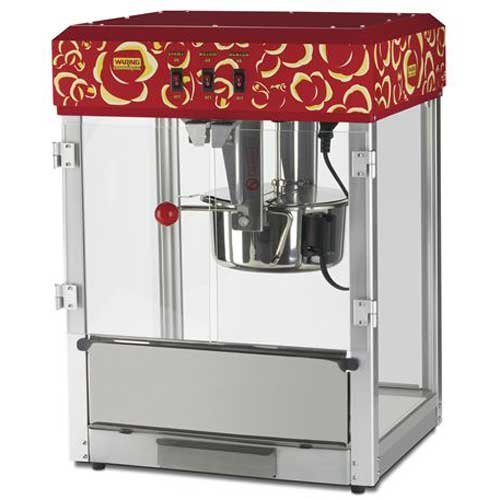 Waring has been making products for commercial kitchens for over 60 years. Today Waring Pro brings that expertise home with premium, commercial-quality products, including the Professional Popcorn Maker. Entertaining friends and family is easier than ever, with Waring Pro. Who wants popcorn!? Everyone. Yes, its a fact: Everyone Wants Popcorn. And the Waring Pro Professional Popcorn Maker delivers up to 12 cups of hot, delicious popcorn in just a few minutes! Great for kids parties, game time snacks, or just because youre in the mood. The door and pivoting kettle easily remove for easy cleaning, and the heat lamp keeps popped corn warm and fresh.