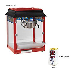 Commercial quality old-fashioned popcorn popper that's easy to use and easier to clean! The side-hinged, anodized aluminum kettle has the highest possible heat transfer to pop quickly and leave few un-popped kernels. Takes only three to five minutes to make popcorn. Heated deck keeps popcorn warm and ready to serve. The sanitary stainless steel interior and kernel drawer make clean up a breeze. Great for bars, restaurants and concession stands. Get a matching popcorn cart (sold separately) to move the popper to your high volume areas. This durable carnival popcorn maker will easily withstand everyday commercial use. Also, perfect for your home. Be the cool kid on the block with your own home bar or home theater popcorn popper! Features: Makes popcorn in 3 to 5 minutes. Side-hinged, anodized aluminum kettle makes it easy to clean and fill. Sanitary stainless steel interior with light. Tempered glass panels. Warming deck keeps popcorn ideal temperature. Kernel drawer for easy clean up. Perfect for small bars, restaurants, concession stands and home use. Specs: Dimensions: 22"W x 26"H x 18"D. Pops 113 oz per hour. 120 Volts, 1200 Watts, 10 Amps. NSF approved, CE listed. Made in the USA.