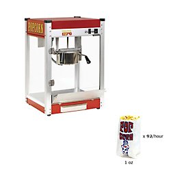 Bring the movie theater home with this 4 oz popcorn machine. This popcorn popper is easy to use and even easier to clean. Takes only three to five minutes to make popcorn. The anodized aluminum kettle has the highest possible heat transfer, which means less un-popped kernels. The stainless steel interior and kernel drawer make cleaning a breeze. This durably constructed, commercial-quality popcorn machine will easily stand up to everyday use. Looks great on your countertop or make it mobile with a matching popcorn cart, sold separately. Impress your friends with your own home theater popcorn popper! Also, perfect for home bars and game rooms. Features: Styled like movie theater popcorn makers. Makes popcorn in 3 to 5 minutes. Anodized aluminum kettle. Stainless steel interior with light. Tempered glass panels. Warming deck keeps popcorn ideal temperature. Kernel drawer for easy clean up. Perfect for your home theater, bar or game room. Specs: Dimensions: 16"W x 24"H x 14"D. Pops approximately 92 oz per hour. 120 Volts, 1200 Watts, 10 Amps. NSF approved, CE listed. Made in the USA. Manufacturer's Warranty: Limited lifetime warranty.
