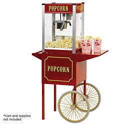 - Styled like movie theater popcorn makers.- Anodized aluminum kettle.