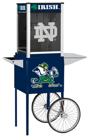 Notre Dame Fighting Irish NCAA Logo 4oz Pop Corn Popper with Cart, Sports Fan Products, 4200-NDM. Introducing our officially licensed college Popcorn Machines manufactured exclusively for Sports Fan Products by Paragon. These 4oz poppers are the perfect size for your home game room, pool hall, or home theatre. These full featured machines work just like the ones in the local theater, but with your favorite college logos! Enjoy theater quality popcorn in just 3-5 minutes. Easy to use and maintain. Cart & Top solid individually or as a complete set. Made in the USA.